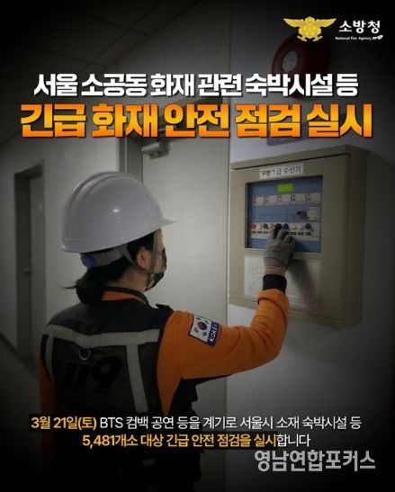 영남연합포커스 기자 | 서울 소공동 화재 관련 숙박시설 등 긴급 화재 안전점검 실시