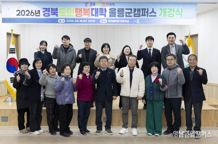 영남연합포커스 김진우 기자 | 울릉군은 18일 오후 2시 울릉군청 4층 회의실에서 남한권 울릉군수(학장)를 비롯해 수강생과 관계자 등 20여 명이 참석한 가운데 ‘2026년 경북도민행복대학 울릉군캠퍼스 개강식’을 개최했다.