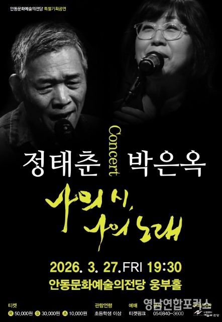 영남연합포커스 김진우 기자 | 안동문화예술의전당은 다양한 장르의 공연을 통해 시민의 문화 향유의 폭을 넓히고자 정태춘․박은옥 콘서트 ‘나의 시, 나의 노래’를 개최한다.