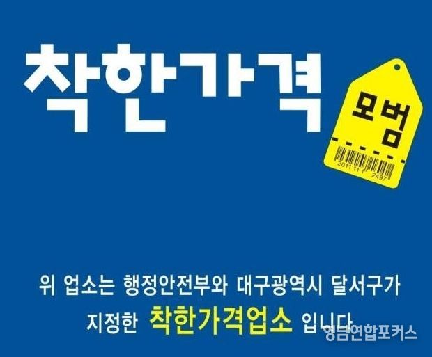 영남연합포커스 김종설 기자 | 대구 달서구 고물가로 인한 서민 부담을 완화하고 지역 상권에 활력을 불어넣기 위해‘착한가격업소’ 22개소를 신규 지정, 총 148개소로 확대 운영한다고 20일 밝혔다.