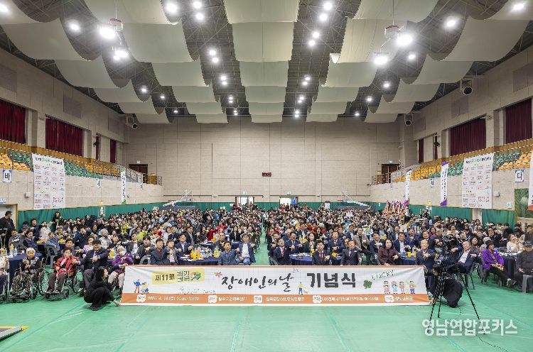 영남연합포커스 관리자 기자 | 칠곡군장애인단체연합회(회장 조정수)는 지난 18일 칠곡국민체육센터에서 한영희 칠곡부군수와 기관·단체장, 장애인단체 및 시설 관계자, 회원, 가족, 자원봉사자 등 700여명이 참석한 가운데 ‘제11회 칠곡군 장애인의 날 기념식’을 성황리에 개최했다.