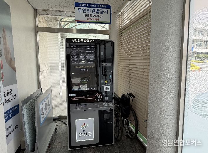 영남연합포커스 관리자 기자 | 울진군은 군민들의 민원 편의 증진을 위해 무인민원발급기 24시간 운영을 기존 7개소에서 10개소로 확대하고 4월 22일부터 상시 개방한다.