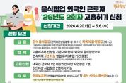 영남연합포커스 기자 | 음식점업 외국인 근로자 '26년도 2회차 고용허가 신청 ■ 신청기간: 2026.4.20.(월)~5.6.(수) ■ 신청 요건 · 업종 한식 음식점업(한국표준산업분류 상 5611), 외국식 음식점업(5612) *고용보험 시스템에 등록된 업종 기준(실제 영업을 영위하는지 여부 등은 '사업자등록증' 또는 '영업신고증'으로 증빙) *기관구내식, 출장이동식, 기타간이, 주점, 비알코올 음료점은 미허용 · 업력 고용허가서 신청일 기준으로 한식·외국식 음식점업으로 연속하여 5년 이상 영업 유지(휴업 기간 포함) *부가가치세 과세표준증명원상 과세기간 또는 사업자등록증상 '개업년·월·일'로 확인 · 고용인원 내국인 근로자 1인 이상 5인 미만 사업장은 1명, 5인 이상 사업장은 2명까지 가능 *내국인근로자(피보험자) 수는 고용부에서 고용보험시스템 전산 확인 · 직무 주방보조원(한국표준직업분류 상 95220) 및 음식 서비스 종사원(45311) *현장 여건에 맞게 직무범위 탄력적 운영 가능 · 문의 - 고용노동부 상담센터 ☎1350 · 신청 - 사업장 관할