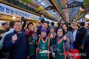 영남연합포커스 기자 | 이재명 대통령은 30일 오후 제주 타운홀미팅 '제주의 마음을 듣다' 종료 후, 김혜경 여사와 함께 1박 2일 제주 일정의 마지막 일정으로 동문시장을 방문했다. 동문시장은 제주시 도심에 위치한 대표적인 전통시장으로, 대통령 부부의 방문 소식에 상인들과 방문객들은 놀라움 속에 환호와 박수로 이들을 맞이했다. 입구에 서 있던 한 외국인 관광객은 어디서 왔냐는 이 대통령의 질문에 “오스트레일리아”고 답하기도 했다. 이 대통령 부부는 셀카촬영과 악수를 이어가며 과일모찌 가게에 들러 온누리상품권으로 한라봉모찌와 딸기모찌를 구입해 즉석에서 강유정 대변인, 하정우 수석 등과 함께 시식했다. 이동 내내 이어지는 셀카요청에도 이 대통령 부부는 반갑게 응했다. 그러자 시장을 찾은 많은 도민들은 이동 중인 이 대통령 부부를 향해 "사랑해요", "와 대박", "화이팅"을 외치는 소리로 화답했다. 이 대통령은 특히 어린이들의 사진 요청에 적극적으로 답했다. "애기 있어요"라는 소리가 들리면 발걸음을 멈추고 아이들과 하이파이브를 하거나 반갑게 셀카를 찍었다. 또한 강아지를 안