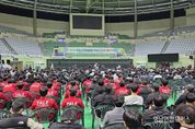 영남연합포커스 김진우 기자 | 안동시체육회는 3월 26일 안동체육관 주경기장에서 ‘제64회 경북도민체육대회’에 참가하는 시 선수단의 출전을 공식화하고 필승의 의지를 다지는 결단식을 개최했다. 이번 결단식은 대회 개막을 앞두고 안동시를 대표해 출전하는 선수들의 사기를 진작하고, 안전한 대회 참가를 도모하기 위해 마련됐다. 행사에는 종목별 선수와 임원, 체육회 관계자 등 400여 명이 참석해 뜨거운 결전의 의지를 다졌다. 행사는 준비 상황에 대한 경과보고를 시작으로 선수단기 수여, 꽃목걸이 전달, 격려사, 선수 대표 선서 순으로 진행됐다. 안동시 선수단은 정정당당한 승부와 최선의 노력을 다짐하는 선서를 통해 안동시의 명예를 걸고 대회에 임할 것을 약속했다. 안동시체육회 관계자는 “그동안 힘든 훈련 과정을 이겨낸 선수들의 노력이 헛되지 않도록 대회 기간 중 선수단 안전과 컨디션 관리에 만전을 기할 것”이라며, “이번 대회가 안동시 체육의 저력을 경북 전역에 알리고 시민 화합의 계기가 되길 바란다”고 밝혔다.
