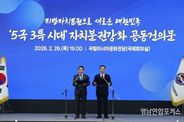 영남연합포커스 김종설 기자 | 대한민국시장·군수·구청장협의회는 2월 26일 광주 국립아시아문화전당에서 민선8기 4차년도 제3차 공동회장단회의를 개최하고,『5극3특 시대 자치분권 강화 공동건의문』을 발표했다. 협의회 조재구 대표회장은 건의문을 통해“수도권 집중 극복과 지역 주도의 새로운 국가발전전략인 5극3특 균형성장 정책의 성패는 기초지방정부의 권한과 재정 확충에 달려 있다”고 했다. 이를 위해 그 초석이 되는 전남·광주 행정통합이 자치분권의 새로운 이정표로서, 지역성장과 경쟁력 강화의 모범모델로 자리매김 할 것을 강조하면서,“더 강화된 지방분권, 더 확대된 지방재정”을 위한 제도개선을 정부와 국회에 강력히 건의했다. 주요 건의내용은 ▲권한이양을 통한 기초지방정부 지방분권 강화 ▲지방교부세 확충과 보통교부세 자치구 직접 교부를 통한 지방재정의 확충 ▲국가균형성장 계획 및 정책 수립 과정에서 기초지방정부 협의 의무화 등이다. 한편, 협의회에 따르면 민선8기 후반기 대표적인 성과로 중앙지방협력회의에 기초지방정부 참여가 확대되어, 기존 대표회장 1명에서 시장․군수․구청장별 1명씩, 총 3명으로 확대될