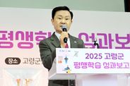 영남연합포커스 김진우 기자 | 고령군은 2025년 평생학습도시로 선정된 것을 기념하여, 평생학습도시 비전 선포식과 함께 한 해 동안의 평생학습 성과를 공유하고 지속 가능한 학습문화 공동체 구축을 위한 소통의 장을 마련하는 '2025 고령군 평생학습 성과보고회'를 11월 27일 군민체육관에서 성황리에 개최했다. 이번 행사는 고령군이 평생학습도시로서 새로운 전환점을 맞이하는 의미 있는 자리로, 군민들과 함께 평생학습을 통해 성장하고 미래를 준비하는 고령군의 비전을 선언하는 시간으로 꾸며졌다. 행사는 식전 공연으로 덕곡면 평생학습센터 프로그램의 풍물 공연과 성산면의 난타 공연을 시작으로, 정통 라틴댄스, 아랑고고장구, 난타, 운수대통 각설이팀의 학습 발표가 이어졌다. 참가자들은 그동안 갈고닦은 실력을 마음껏 펼치며 축제 분위기를 한층 고조시켰다. 또한, 고령군에서 진행한 다양한 평생학습 사업의 성과를 전시하는 시간도 마련됐다. 평생학습마을 만들기, 성인 문해, 평생학습 동아리 활동, 장애인 평생교육 등 한 해 동안 이루어진 여러 프로그램들의 작품들이 전시됐으며, 나눔의 가치를 함께 나누는 시간이 됐다. 또한, 학습자