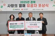 영남연합포커스 김진우 기자 | 예천군은 26일 오전, 경북사회복지공동모금회(회장 전우헌)가 주최하는 ‘2025 경상북도 찾아가는 이웃돕기 유공자 포상식’이 예천군청에서 열렸다고 밝혔다. 이번 행사는 희망 2025 나눔캠페인과 나눔 및 선행문화 확산에 기여한 개인 및 나눔봉사단의 공로를 기리고 격려하기 위해 마련됐다. 이날 행사에서 나눔·봉사를 실천한 공로로 사회복지공동모금회장 표창에 학가산 전통메주마을 박상지 대표, 기부와 선행을 실천한 공로로 경북도지사표창에 해인종합상사 황지훈 대표, 최우수 봉사단에 예천군 사랑의열매 나눔봉사단이 선정됐다. 아울러 봉사단 활동에 활발히 참여해 준 김종순 사무국장과 박승용 단원에 사회복지공동모금회장 표창을 수여했다. 예천군 사랑의열매 나눔봉사단은 ‘희망2025나눔캠페인’에서 약 5억 8천만 원의 이웃돕기 성금을 모금했으며, 착한가게 영입, 나눔리더 발굴 등 따뜻한 나눔문화 확산에 앞장선 결과 2년 연속 최우수 봉사단으로 선정될 수 있었다. 경북사회복지공동모금회 손병일 사무처장은 “한해 동안 열심히 활동 해 주신 예천군 사랑의 열매 나눔봉사단에 감사드리며, 내년에도