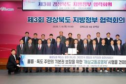 영남연합포커스 김진우 기자 | 울릉군은 2026년 1월 8일 오전 11시, 경북도청 4층 화백당에서 열린 제3회 경상북도 지방정부 협력회의에서 울릉도‧독도 주민의 교통권 보장을 위한 ‘해상교통 공영제 조속 도입 촉구 건의서’에 대해 이철우 경북도지사와 도내 전 시장‧군수가 공동 서명했다고 밝혔다. 이번 공동 서명은 울릉도와 독도를 잇는 해상교통 문제가 더 이상 특정 지역의 현안에 머무르지 않고, 국가가 직접 책임져야 할 공공성과 영토 주권의 영역임을 분명히 하기 위한 지방정부 차원의 공식 입장 표명이다. 서명된 건의서에는 최근 국회에서 도서지역 주민의 교통권을 국가가 책임지도록 하는 관련 법률안이 발의‧논의되고 있는 점을 언급하며, 울릉도‧독도 해상교통 문제가 이미 국가 정책 차원에서 다뤄져야 할 사안으로 전환되고 있음을 강조했다. 특히, 울릉해상항로 공영제 도입은 단순한 교통 정책을 넘어 도서지역 주민의 안정적이고 지속 가능한 이동권 보장, 울릉도‧독도 정주 여건 개선, 독도 영토 수호의 실질적 기반 강화, 국가가 영토 주권을 책임지고 관리한다는 분명한 대내외 메시지 제시라는 측면에서, 반드시 이행되어야 할
