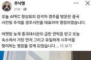 영남연합포커스 김진우 기자 | 경주시는 주낙영 경주시장이 30일 오후 APEC(아시아·태평양경제협력체) 정상회의 참석차 경주를 방문한 시진핑 중국 국가주석을 공식 영접했다고 밝혔다. 주낙영 시장은 이날 코오롱호텔 로비에서 경주시민을 대표해 시진핑 주석을 직접 맞이하고 꽃다발을 전달했다. 주 시장은 “천년 고도 경주는 이제 문화와 국제회의가 공존하는 도시로 성장하고 있다”며 “이번 APEC을 계기로 한중 간 우호 증진은 물론, 아시아 각국과의 협력 관계를 강화하는 출발점이 되길 바란다”고 환영 인사를 전했다. 시진핑 주석은 “16년 만에 다시 경주를 찾게 돼 감회가 새롭다. 지난 방문의 따뜻한 환대를 기억한다”며 “천년의 역사와 문화를 품은 경주에서 APEC 정상회의가 열리는 것은 매우 뜻깊은 일”이라고 화답했다. 이번 영접 행사는 APEC 정상회의 주요 일정의 하나로, 경주의 역사·문화적 품격을 국제사회에 알리고 세계 각국 정상들에게 ‘환대의 도시’ 이미지를 각인시키는 계기가 됐다는 평가다. 한편, 경주는 APEC 정상회의 기간 대표단의 방문이 이어지며 세계 속 문화·관광 중심도시로 주
