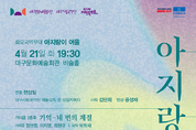 영남연합포커스 김종설 기자 | 포스터. 이미지 제공/대구광역시 대구시립국악단 화요국악무대 <아지랑이 여울> 공연이 4월 21일(화) 저녁 7시 30분 대구문화예술회관 비슬홀에서 펼쳐진다. 이번 화요국악무대는 가야금, 양금, 소금, 태평소 등 다양하고 새로운 창작 국악 곡들로 구성되며, 대구를 대표하는 전통춤 ‘달구벌입춤’도 감상할 수 있다. 가야금 3중주 ‘기억-네 번의 계절’로 공연의 문을 연다. 반복되는 계절의 아름다움을 노래하는 곡으로 세대의 개량 가야금이 풍성하고 화려한 느낌을 자아낸다. 양금과 거문고 ‘북천이 맑다커늘’에서는 자연의 흥취와 풍류를 노래한 시조를 양금의 경쾌함과 거문고의 중후함으로 표현한다. 소금 독주 ‘To You’는 고마운 이에게 바치는 선물 같은 곡으로 위로와 감동의 메시지가 담겨 있다. 관악기 중 가장 높은 음역대와 더불어 맑은 음색을 가진 소금의 매력을 한껏 느낄 수 있다. 우리 지역의 향토 전통무용 ‘달구벌입춤’ 또한 만나볼 수 있다. 오브제로 활용되는 수건과 소고놀이의 허튼춤이 조화를 이루는 와중에 여성의 다소곳함과 정감이 깃든 대구를 대표하는 전통춤이다. 해금과 25현 가야금을 위한 ‘다랑쉬’에서는 제주도 다랑