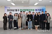 영남연합포커스 김종설 기자 | 대구 동구청은 지난 30일 ‘청년정책위원회 정기회의’를 개최하고 총 148억 원 규모의 ‘2026년 동구 청년정책 추진계획’을 확정했다. 확정된 청년정책 추진계획은 △일자리 △주거 △교육·문화 △복지·생활 △참여·권리 등 5대 분야 21개 세부사업으로 청년 수요를 반영해 실질적인 지원 체계를 강화하는 데 초점을 맞췄다. 특히, 일자리 분야는 동구 소재 신산업 관련 기업과 신규 채용 청년을 함께 지원하는 ‘청년일자리 선도사업’과 고용노동부 공모사업으로 선정된 학교 및 지역자원을 취업과 연계하는 단계적 진로설계 프로그램인 ‘청년성장 프로젝트’를 신규로 추진한다. 또, 청년 1인가구 커뮤니티인 ‘이웃살롱’을 개설해 사회적 고립을 예방하고 상호 돌봄 체계 기반 마련으로 지역사회 청년 네트워크를 강화한다. 김태운 동구청장 권한대행은 “형식적인 지원을 넘어 청년들이 피부로 느낄 수 있는 실효성 있는 정책을 추진하는 데 최선을 다하겠다”고 말했다.