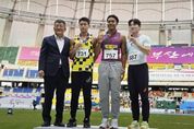 영남연합포커스 김진우 기자 | 예천군 육상 직장운동경기부 나마디 조엘 진 선수가 제106회 전국체전에서 ‘스프린터 더블’(100m, 200m 동시 우승)에 이어 400m 계주에서도 금메달을 획득하며 3관왕을 달성했다. 대한민국의 육상 단거리 기대주 나마디 조엘 진 선수는 19일, 100m 10초 35로 금메달을 획득했으며, 다음날 20일에는 200m에서 현역 최강자 고승환(광주광역시청) 선수를 제치고 금메달을 획득한 데 이어 21일, 400m 계주에서도 금메달을 획득하여 대한민국 남자 단거리 최강자임을 다시 한번 확인했다. 앞서 조엘 진은 지난 9월 27일 홍콩에서 열린 제2회 동아시아 20세 이하(U-20)육상선수권대회 100m 예선에서 10초 26에 결승선을 통과하며, 자신의 종전 최고 기록(10초 30)을 0.04초 단축하는 등 이번 대회를 위해 철저히 준비를 해왔다. 조엘 진 선수는 “지난 시즌 내내 제 장점을 극대화하고 단점을 보완하는 훈련을 계속해왔던 것이 이번 전국체전에서 좋은 결과로 이어진 것 같다”며, “초반 스타트에서 뒤처지지 않으면서, 후반 가속력을 살릴 수 있었던 것이 3관왕의 핵심이었다”